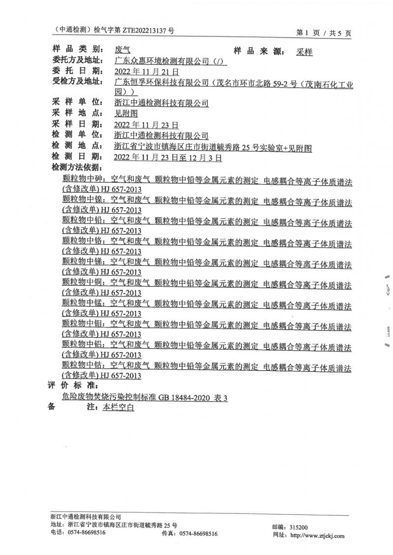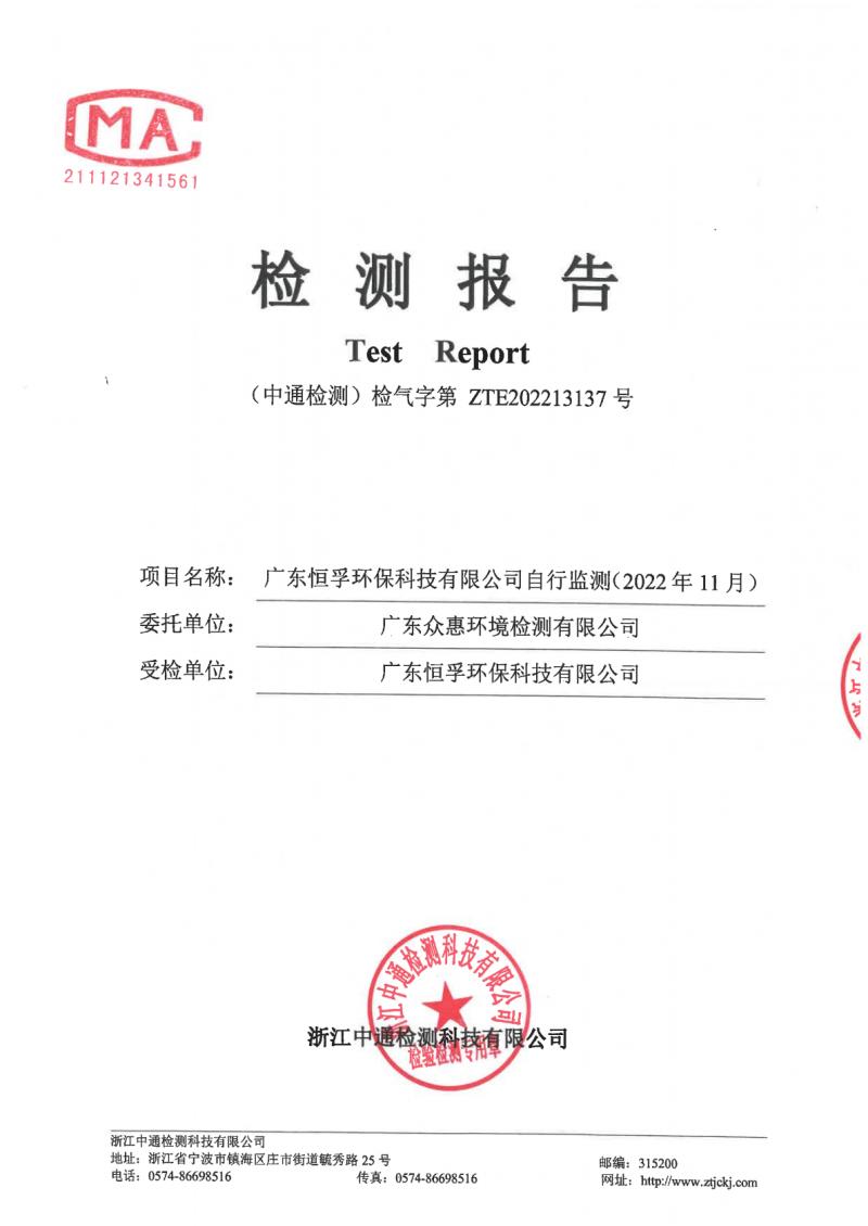 (恒孚)22年12月废气检测报告ZTE202213137